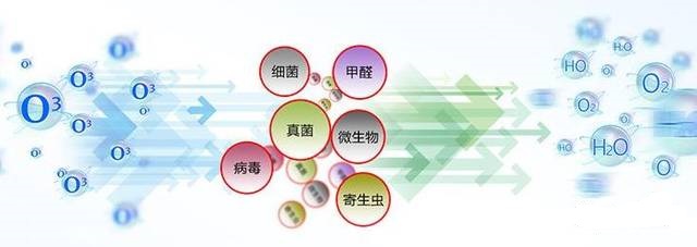 臭氧為氧氣的三原子形式,通過氧原子和氧分子的重新組合生成。臭氧具有極強的氧化性和殺菌性能,是自然界最強的氧化劑之一,幾乎對所有病菌、病毒、霉菌、真菌及原蟲、卵囊都具有明顯的滅活效果,且滅菌時間來說,迅速無比,是氯的300~600倍,紫外線的3000倍,20~200μg/L的臭氧濃度能有效抑制水中微生物的繁殖。